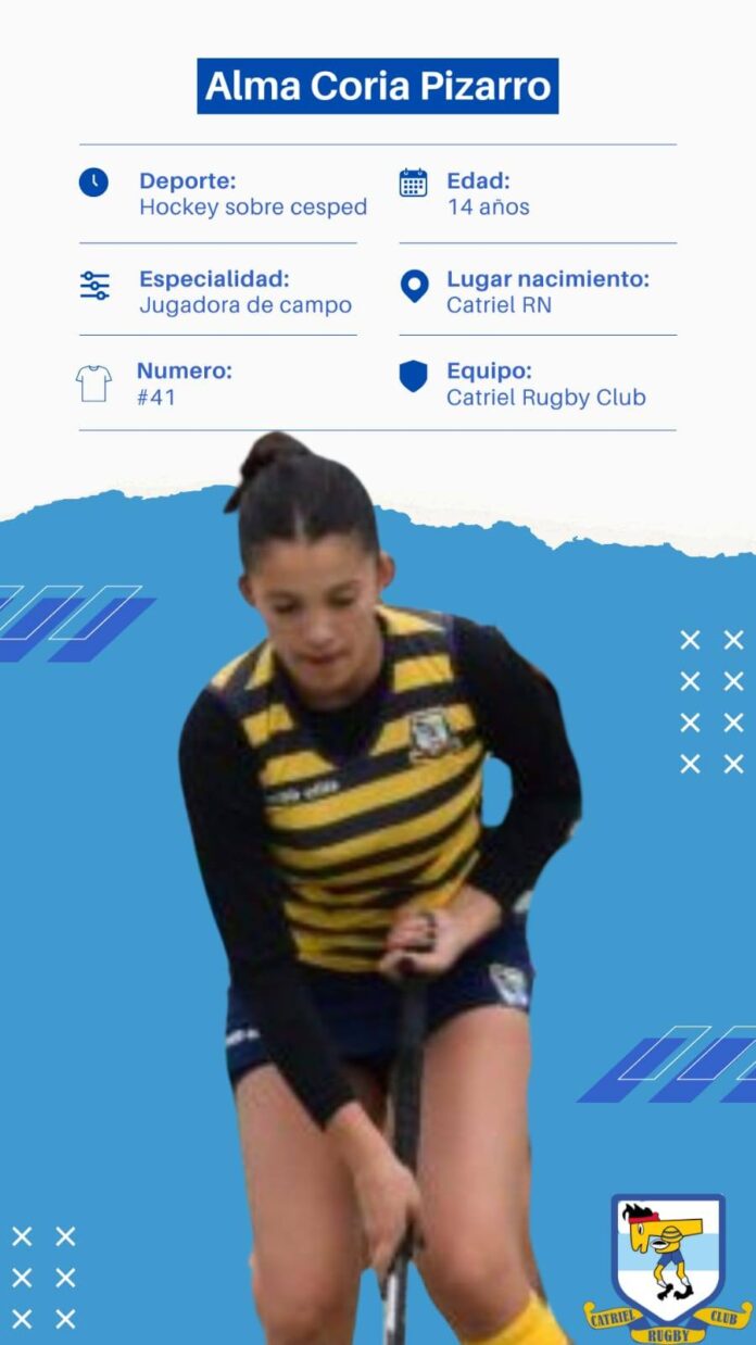 Catriel – La joven jugadora de hockey Alma Coria Pizarro, representante del Catriel Rugby Club, continúa consolidando su camino en el alto rendimiento deportivo. Esta semana fue convocada por tercera vez a la preselección sub 16 de la Federación Rionegrina de Hockey (FHRN), y además recibió la importante noticia de haber sido elegida para formar parte del Centro de Tecnificación Local, un plan de entrenamiento de elite orientado al desarrollo técnico y táctico individual.