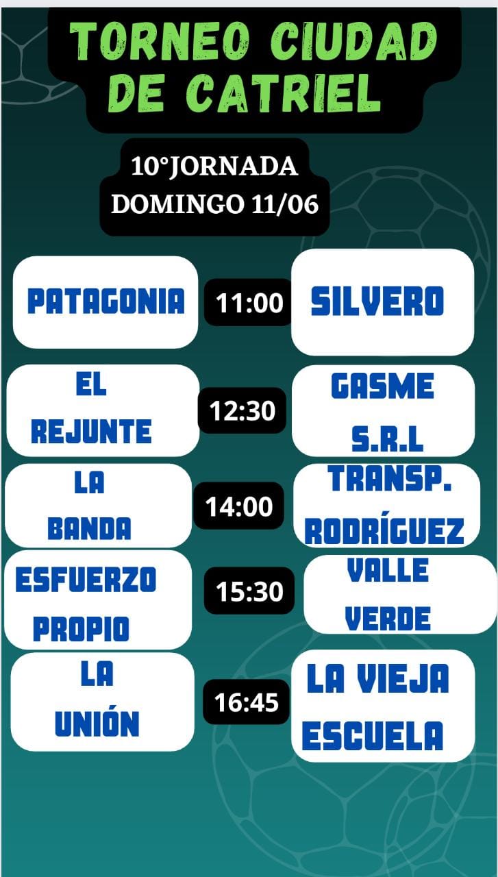 Catriel-Se viene una nueva fecha de la Copa Ciudad de Catriel en el complejo La Chacra sobre ruta 151, donde la +38 está al rojo vivo con varios equipos que son protagonistas fecha a fecha y en la +50 con un líder absoluto, aunque nadie quiere dejar puntos en el camino.