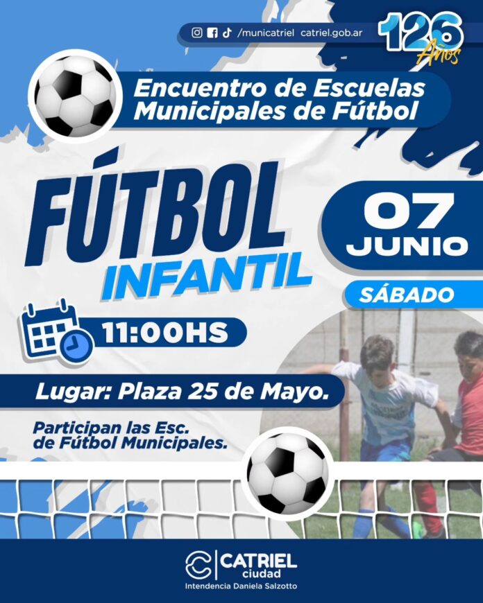 Te esperamos en el Encuentro de Fútbol Infantil, con la participación de nuestras escuelas municipales. Una jornada para compartir, disfrutar y seguir promoviendo valores a través del deporte.