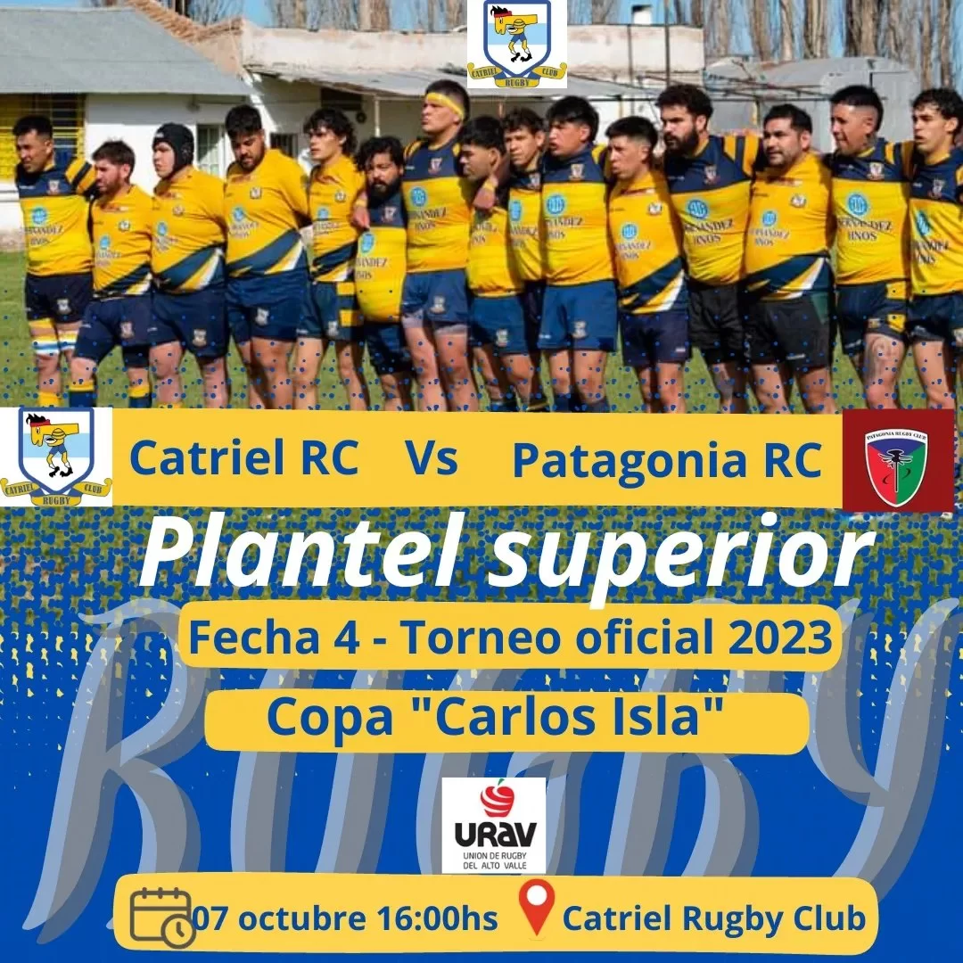 El Catriel Rugby Club confirma un nuevo sábado pleno de acción de la ovalada, donde se programaron 3 encuentros desde el medio día Catrielense con divisionales formativas y Primera, todos frente al Patagonia Rugby (infosrtpos.com.ar / FM Alas)