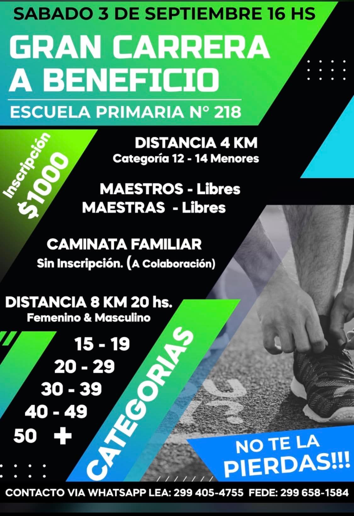 El próximo 3 de septiembre se realizará una importante carrera de calle a beneficio del establecimiento educativo Escuela N°218 “Enrique Mosconi”.