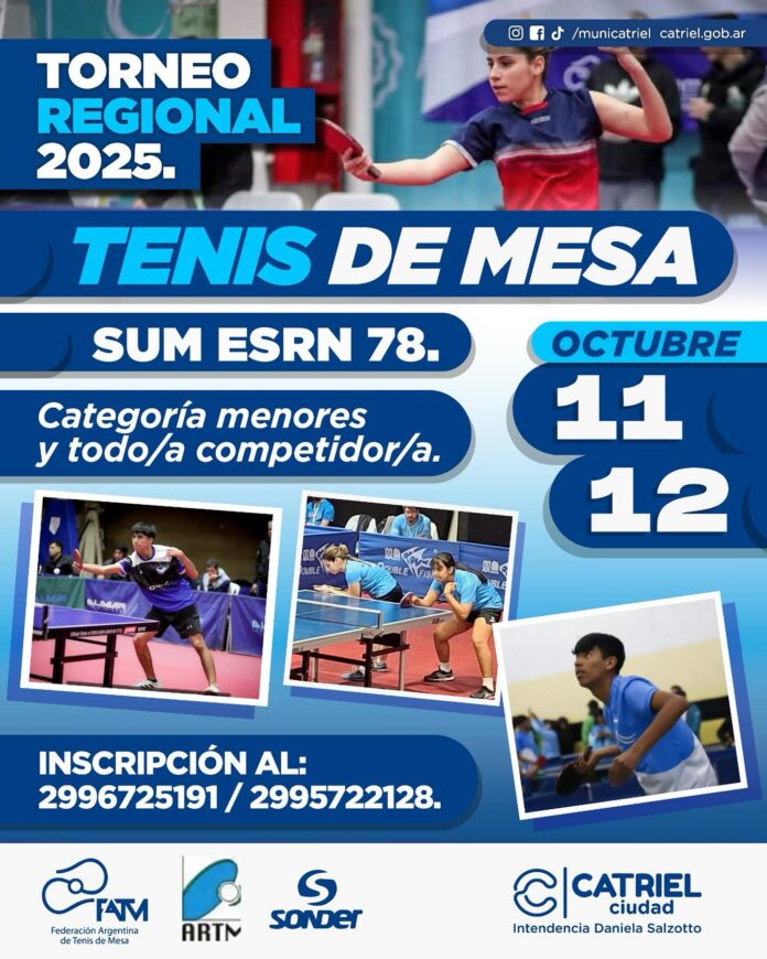 Catriel se prepara para recibir a los mejores exponentes del tenis de mesa de la región en lo que será el 1° Torneo Regional de Tenis de Mesa, un evento histórico para la ciudad y puntuable para el ranking nacional.