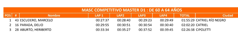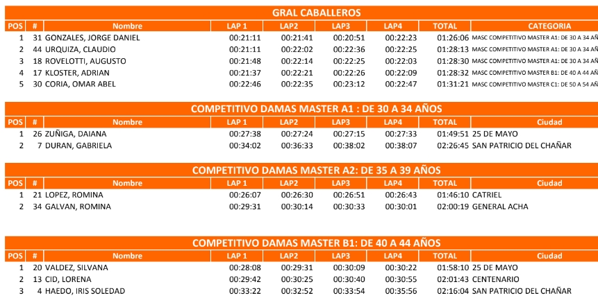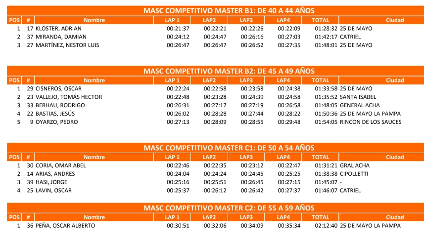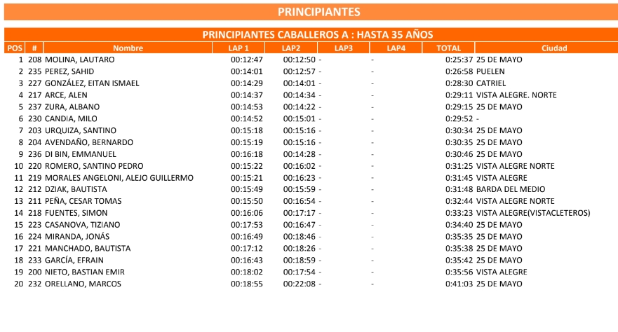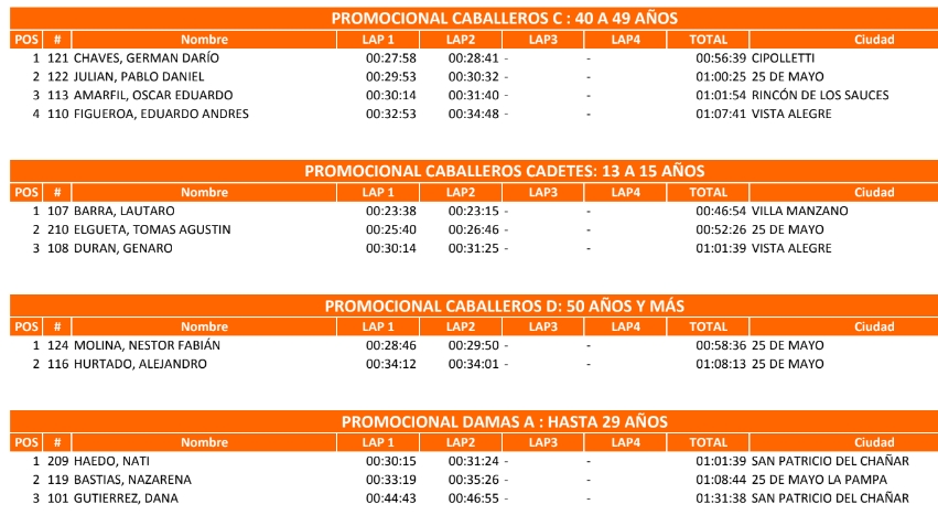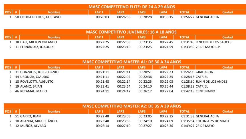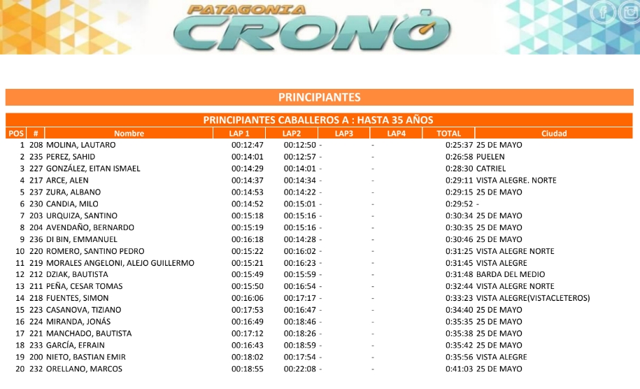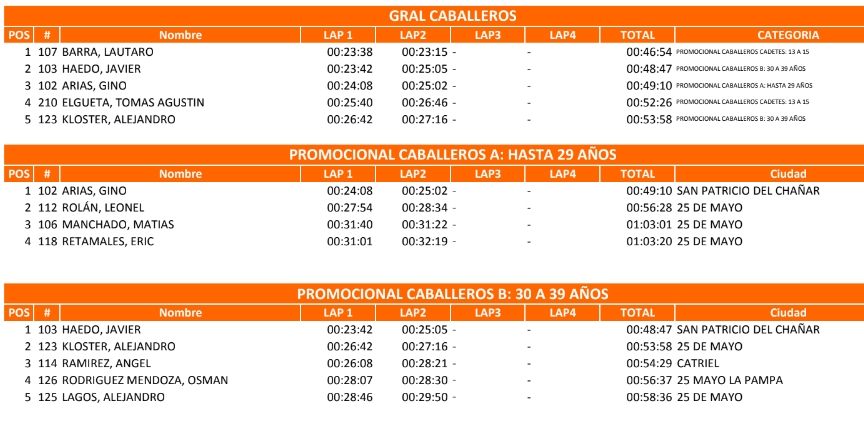 Lautaro Molina de 25 de Mayo fue el mejor en la categoría Caballeros hasta 35 años. Mientras Ismael González de Catriel cosechó el 3 puesto de la divisional.