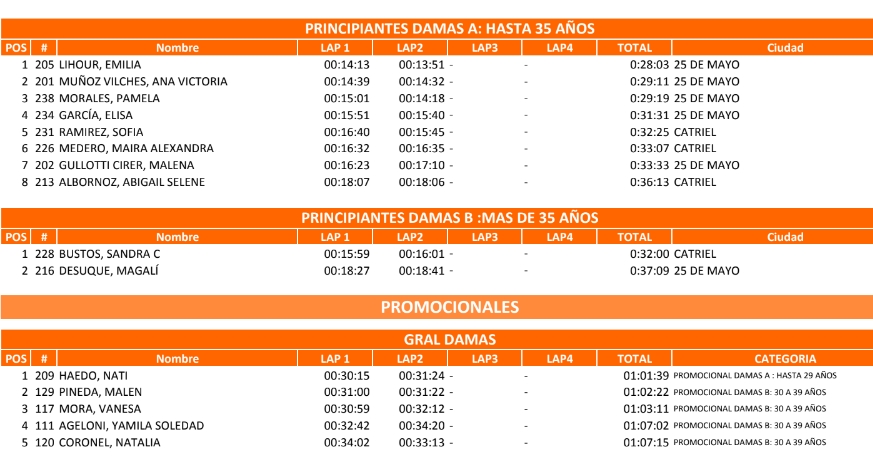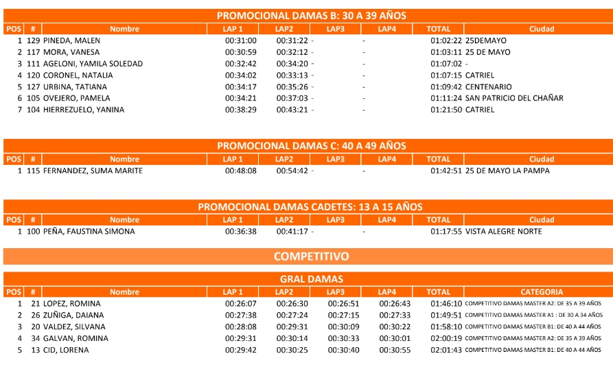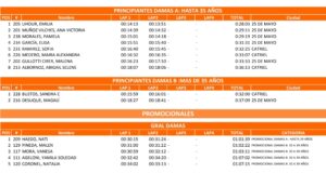 En Damas B, Bustos Sandra fue la n°1, en tanto en Damas Master A (35-39años) Romina López (Catriel) fue la ganadora de punta a punta, quedándose además con la general de la categoría Damas.
