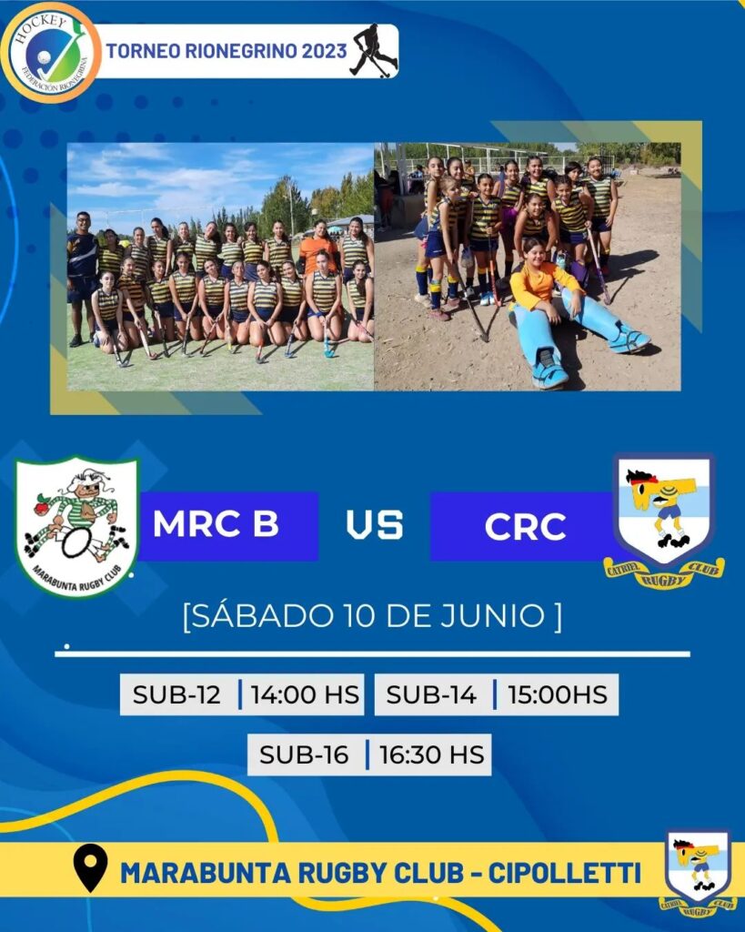 El mismo sábado habrá hockey de la Federación Rionegrina, fuera de casa, ya que las categorías, desde las 14hs con la Sub-12, luego será el turno de Sub-14 y Sub-16 posteriormente (16:30hs), en instalaciones de Marabunta Rugby.