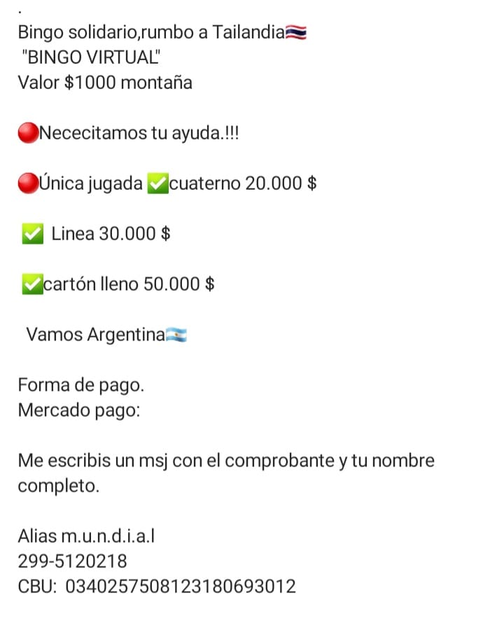 Te dejamos la posibilidad de colaborar a través de un Bingo Virtual, el cual es a totalidad beneficio de Maira Mardones y Jesús Aguero.