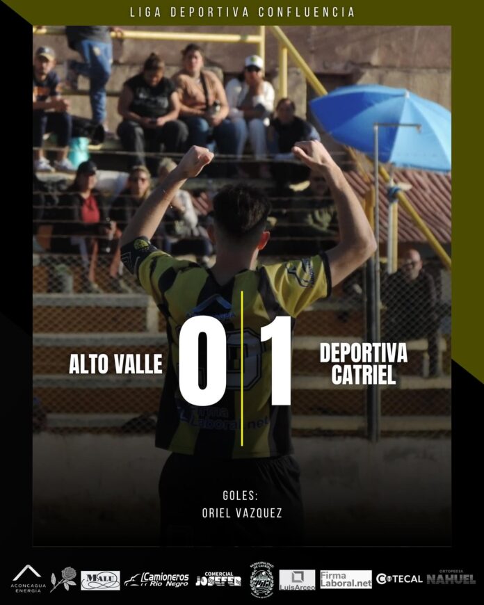 Liga Deportiva Confluencia – Fecha 32. El Club Social y Deportivo Catriel consiguió una victoria clave este fin de semana al vencer por 1 a 0 a Alto Valle en condición de visitante, en el marco de una nueva fecha de la Liga Deportiva Confluencia.