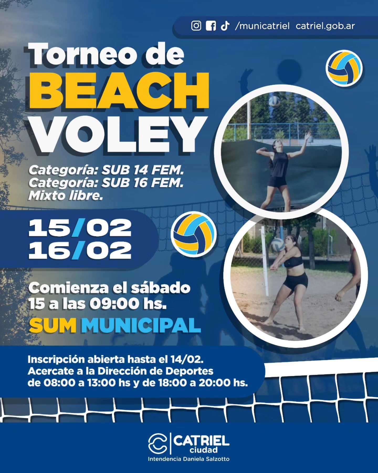 Catriel-El próximo fin de semana la ciudad de Catriel pone nuevamente en acción lo mejor del Beach Vóley en el predio del SUM Eldo Carro.