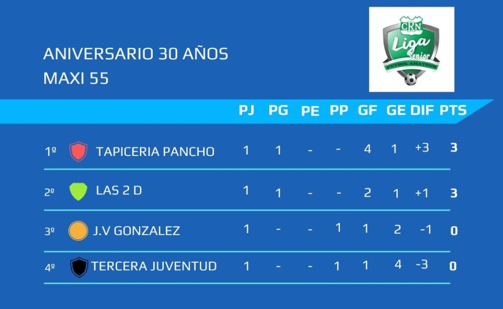 -TAPICERÍA PANCHO 4 (Luis Bravo, Manuel Cares, Luis Pagano y Eduardo Machado). VS TERCERA JUVENTUD 1 (Marcos Cardozo)