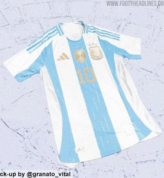 Tanto el parche, como el logo de Adidas y el escudo de la AFA están en color dorado. Los números y los nombres de los jugadores también podrían emplear este mismo color. Otro detalle se encuentra en el cuello, que incluiría el celeste y blanco para imitar la bandera del país.