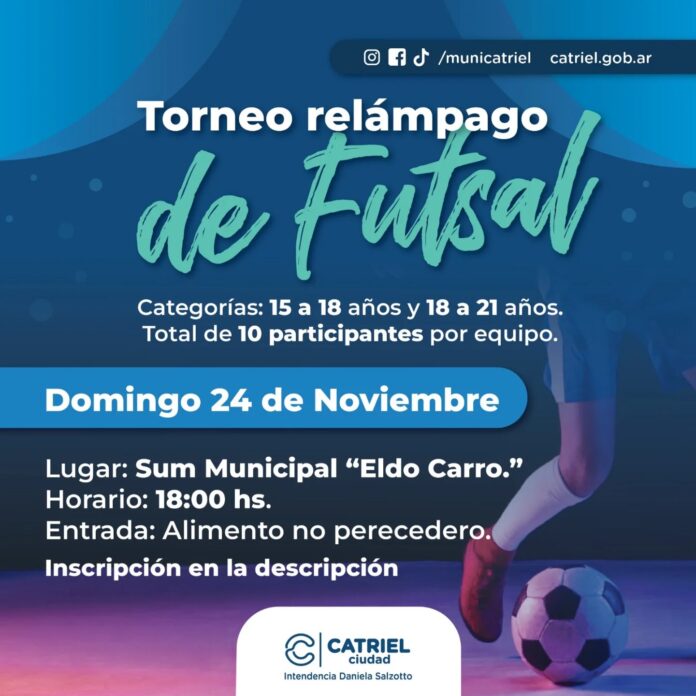 Este domingo 24 de noviembre se llevará a cabo el Torneo Relámpago de Futsal, una oportunidad para disfrutar del fútbol y colaborar con quienes más lo necesitan.